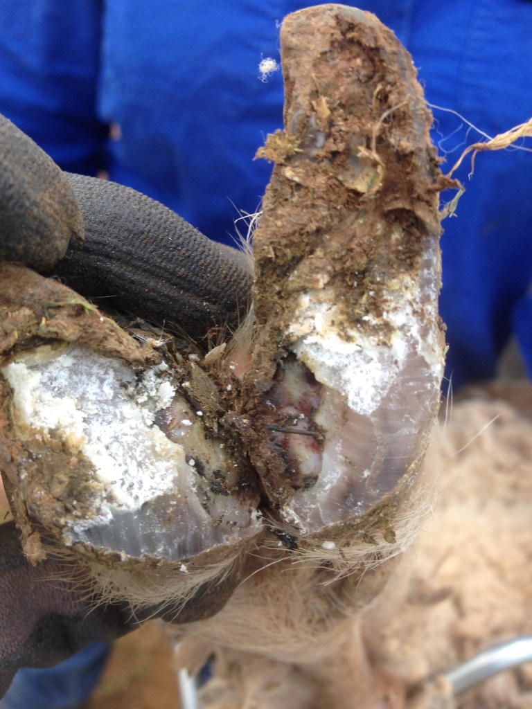 Figure 2. Misshapen hoof, overgrowth of hard horn, the result of a chronic footrot lesion. Photo: B Edmonson